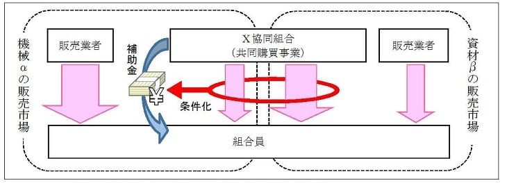 (2)本件は,X協同組合が機械α及び資材βを共同購買事業を利用して購入することを補助金支給の条件とするものであるところ,