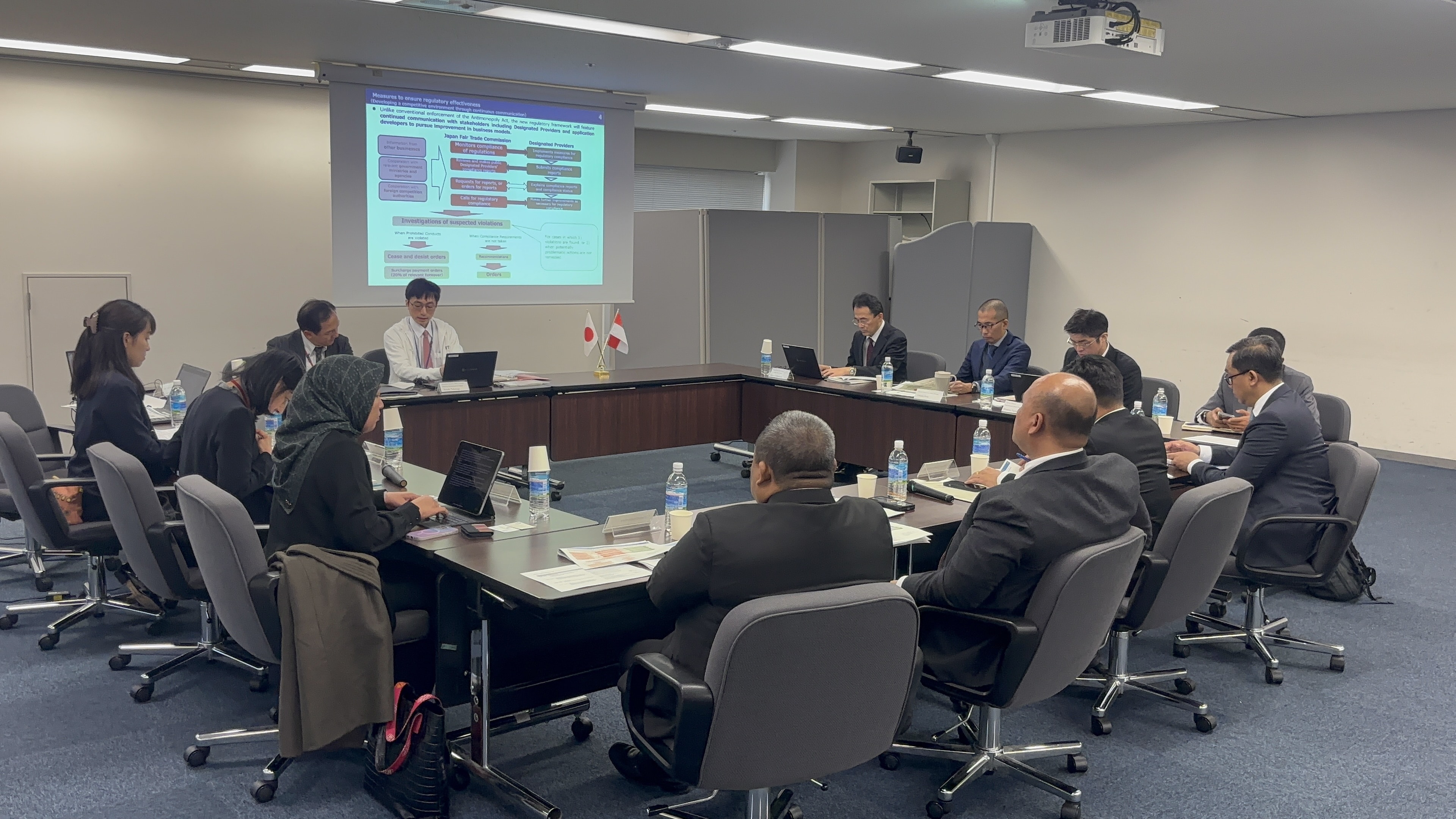 On December 17, 19, and 20, 2024, Mr. Al Armando, Vice Chairperson, Mr. Hilman Pujana, Commissioner, Mr. Muhammad Reza, Commissioner, Mr. Budi Joyo Santoso, Commissioner, Mr. Wahyu Bekti Anggoro, Head of Regional Office II, and others visited the Kinki-Chugoku-Shikoku Office (December 17) and the JFTC headquarters (December 19, 20), and had a discussion about the developments in the digital sector, the Subcontract Act, fair subcontract transactions, merger review practice, guide for compliance program, and organizational structure of regional offices and their activities.