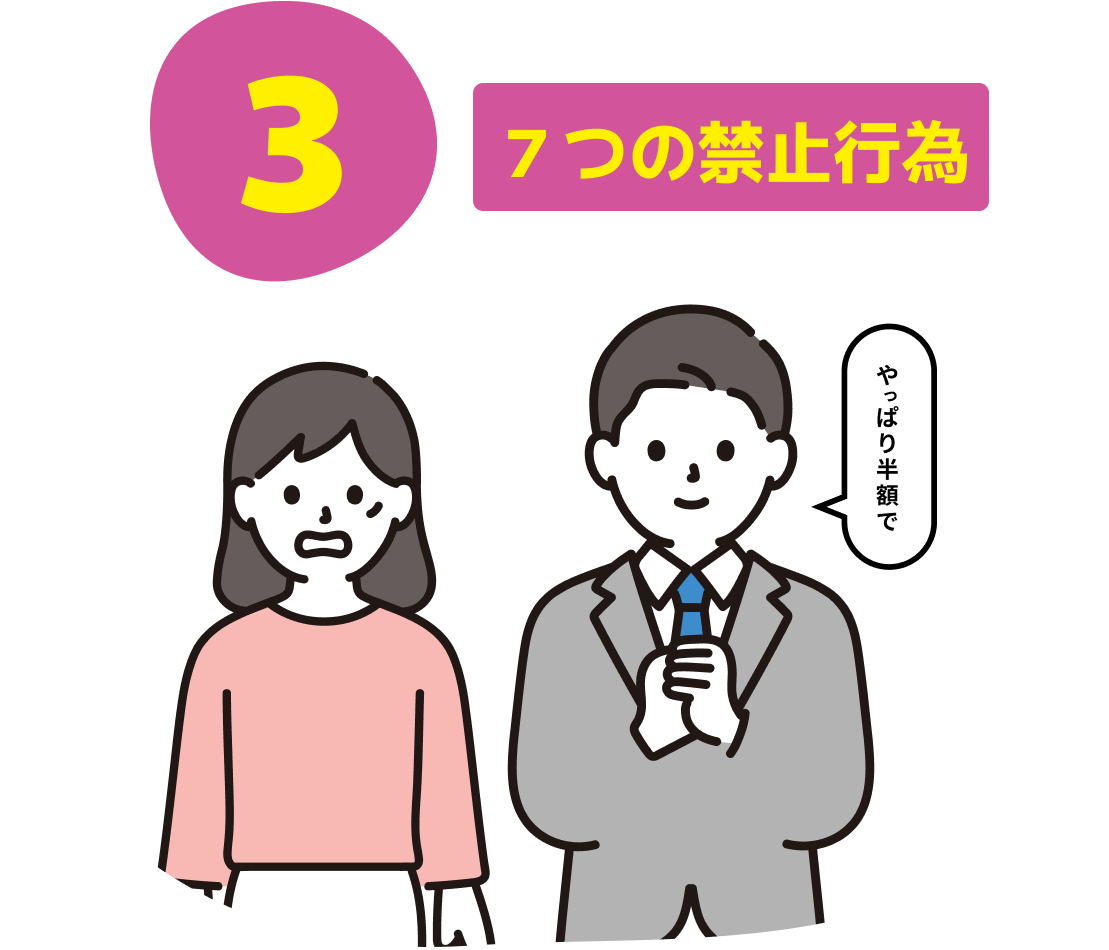 7つの行為が禁止されています。- ①受領拒否(注文した物品または情報成果物の受領を拒むこと)