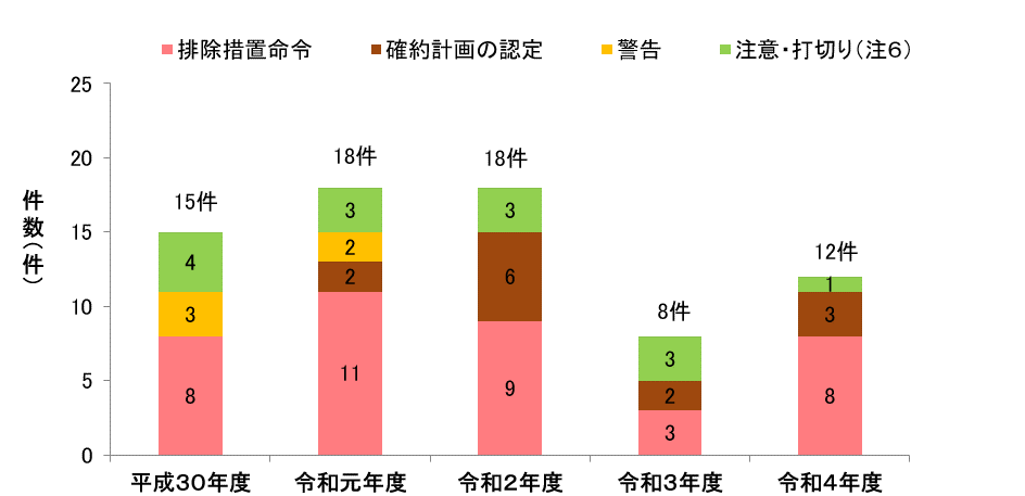 (注4) 法的措置とは、排除措置命令、課徴金納付命令及び確約計画の認定のことである。一つの事件について、排除措置命令と課徴金納付命令が共に行われている場合には、法的措置件数を1件としている。