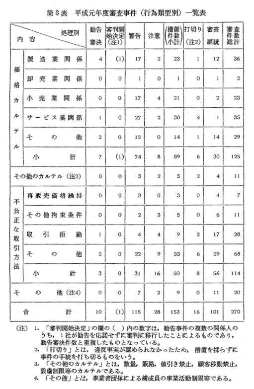 ると,価格カルテル89件,その他のカルテル5件,不公正な取引方法50件,