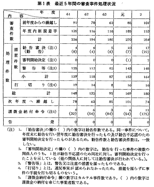 勧告審決,審判開始決定,警告又は注意のいずれかの措置を採ったものを
