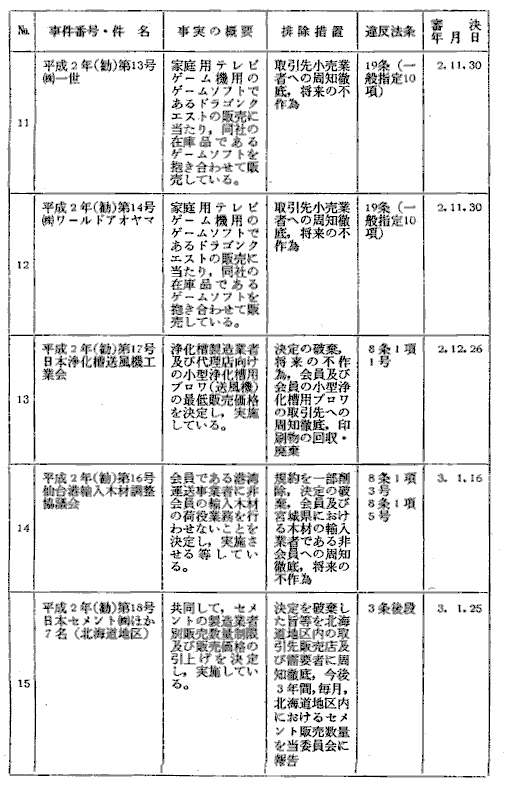 係る事件が6件,その他事業者団体による構成員の事業活動制限等が2件と
