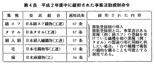 なお,同事業に係る事業活動規制命令等について,制限事項の緩和が行 われた(第4表)。