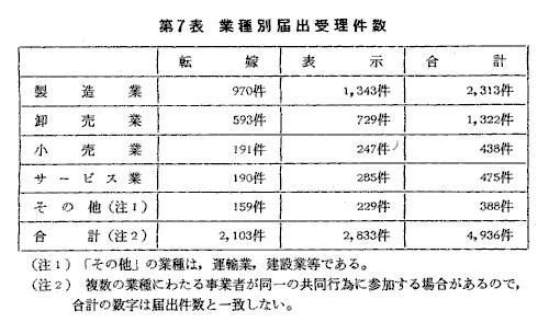 | 消費税法施行後(昭和63年12月30日)から本年度末までの届出件数は 「転嫁カルテル」が2,049件,「表示カルテル」が2,540件,合計4,589件で あった。 |