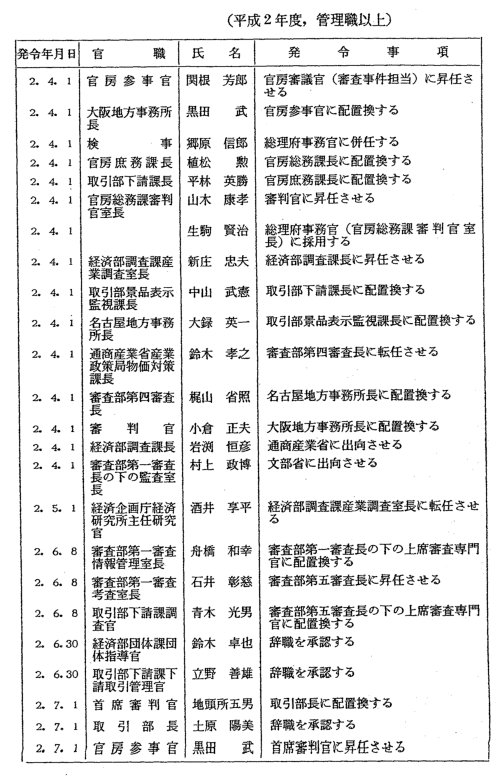た(公正取引委員会事務局組織規程の一部を改正する規則(平成3年公