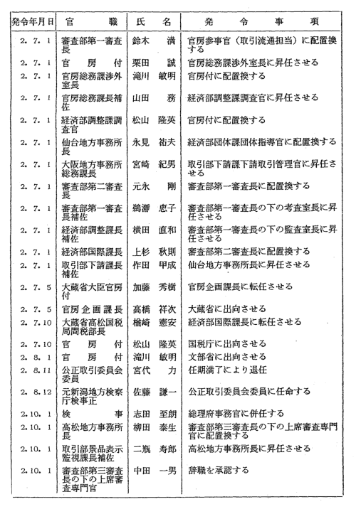2年政令第124号)が行われ,公正取引委員会事務局の職員の定員は,