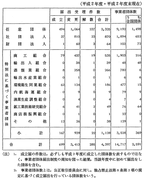 根拠法別事業者団体届出受理件数及び事業者団体数