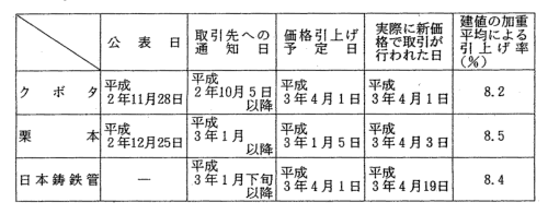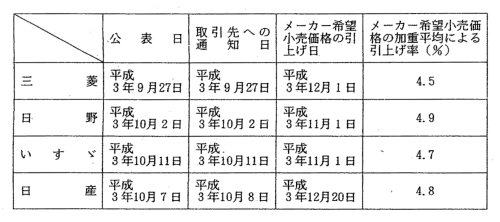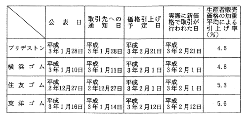 価格引上げは,住友ゴム(平成2年12月27日),横浜ゴム(平成3年1