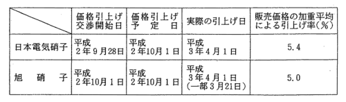 日本電気硝子及び旭硝子の価格交渉開始日,交渉開始時の価格引上げ