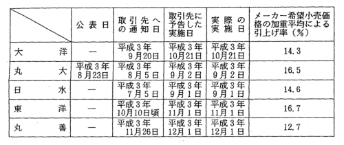 ので,当委員会は,平成4年5月18日,5社に対して価格引上げの理由の
