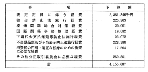 号)され,平成4年度における公正取引委員会事務局の職員の定員は