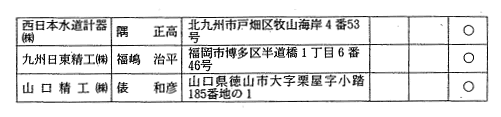 11社のうち,西日本水道計器株式会社,日国工業株式会社及び
