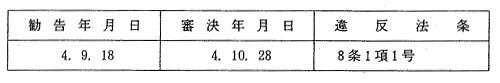 反行為が既に終了していたため,独占禁止法第48条第2項(既住の違