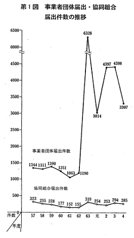 あった。また,平成4年度までに当委員会に対し,届出があった組合数は,