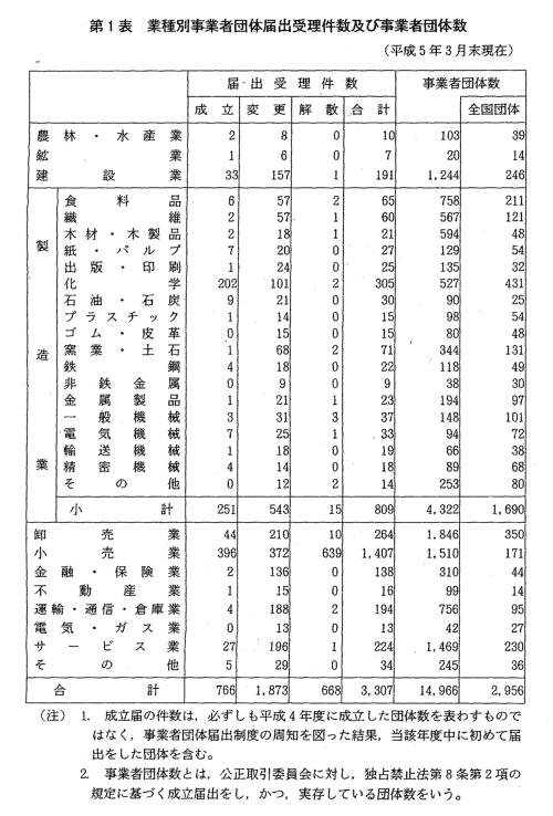 また,平成4年度までに公正取引委員会に対し成立届出を行って現存してい