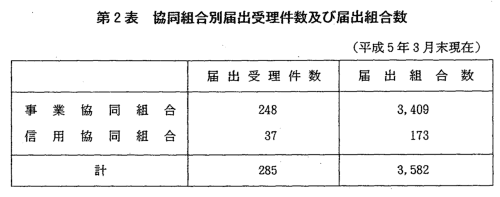 全体で約3,500組合となっている(第2表,附属資料5-2表)。