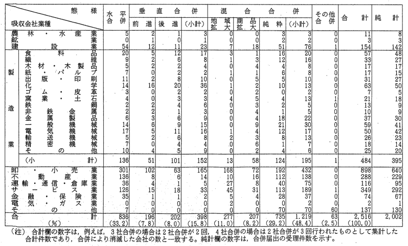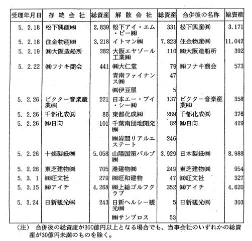 会社の合併・営業譲受け等に関する統計資料(4-3表~4-19表)について |