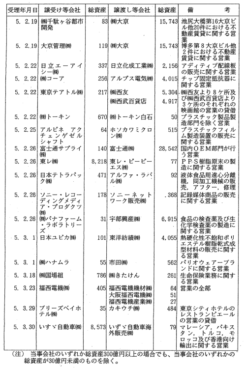 当事会社のいずれかの総資産が300億円以上の営業譲受け等 |