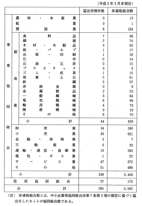 業種別事業協同組合及び信用協同組合の届出受理件数並びに非