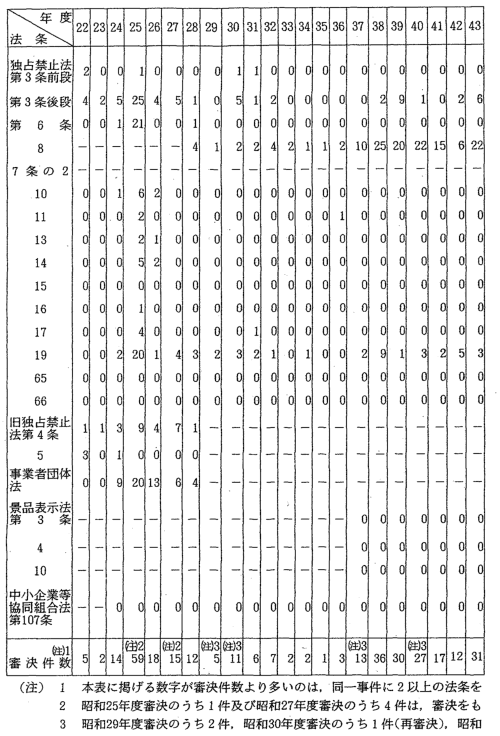 関係法条別審決件数推移