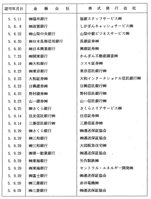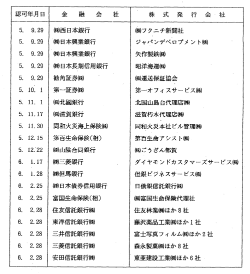 3-1 金融会社の株式保有の制限に係る認可一覧