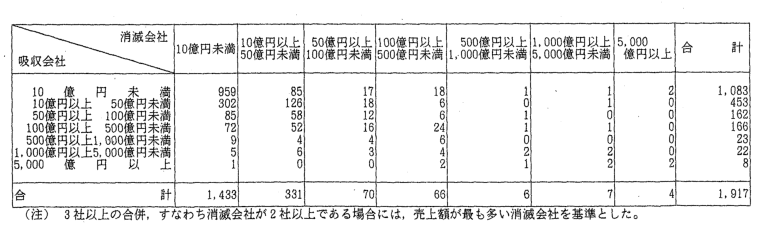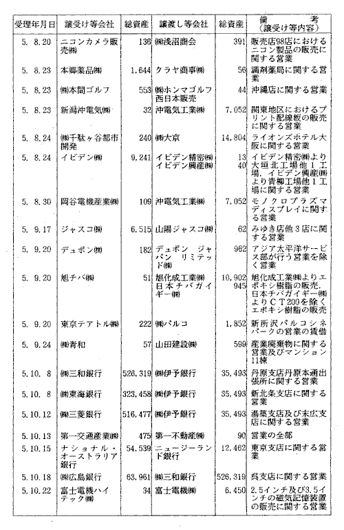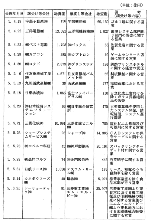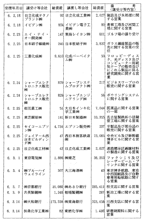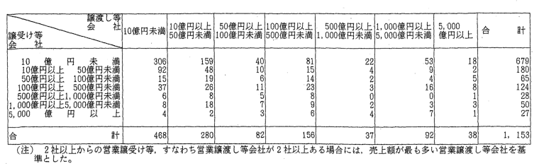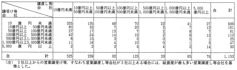 | 3-12表 | 当事会社のいずれかの総資産が300億円以上の営業譲受け等 |