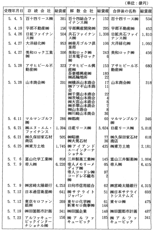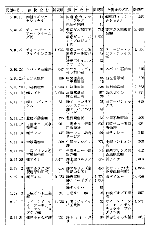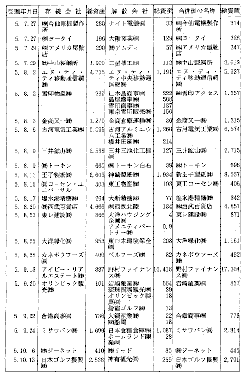 | 3-5表 | 合併態様別吸収総資産額(平成5年度) |