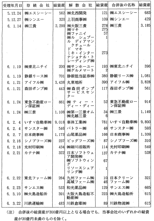 | 3-11表 | 合併後の総資産が300億円以上となる合併 |