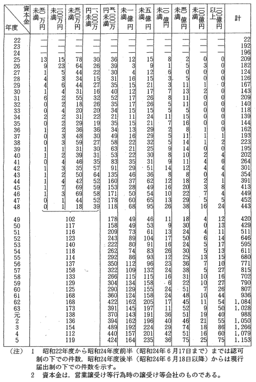 | 3-19表 | 資本金額別営業譲受け等受理件数の推移 |