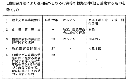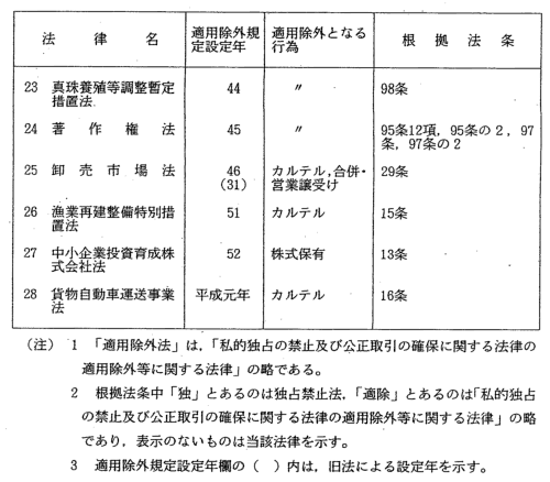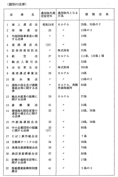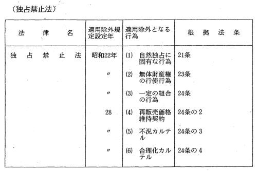 | 6-1表 | 独占禁止法適用除外制度根拠法令一覧 | |||||||||||||||||||||||||||||||||||||||||||||||||