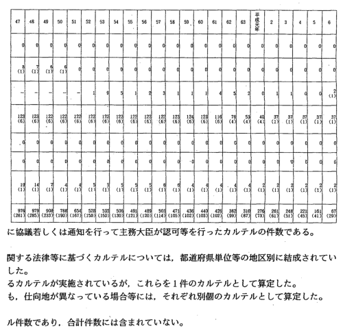 | 6-2表 | 年次別・適用除外法令別カルテル件数の推移 | |||||||||||||||||||||||||||||||||||||||||||||||||