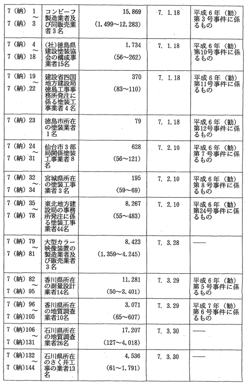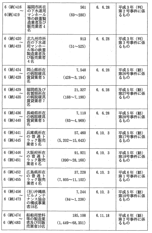 当該2事業者に係る合計6億9710万円の課徴金納付命令(平成6年(納)第47