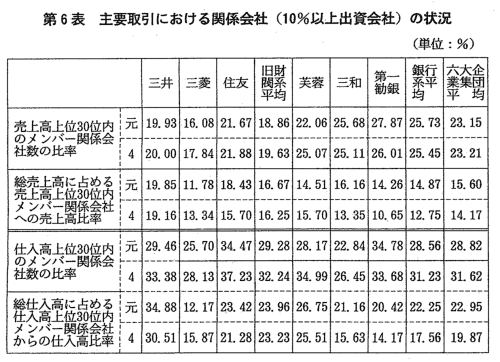 おり,六大企業集団が排他的・閉鎖的な取引慣行等を有するものである