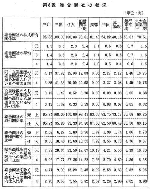総合商社については,旧財閥系企業集団ではほとんどの企業集団メン