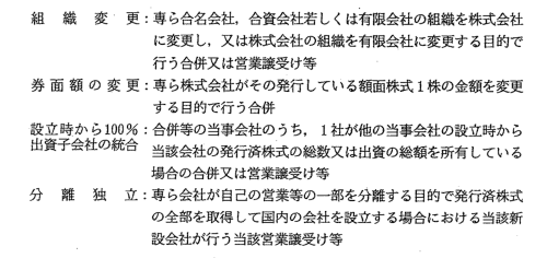 取引方法による場合の会社等の株式保有・役員兼任・合併・営業譲受け等の