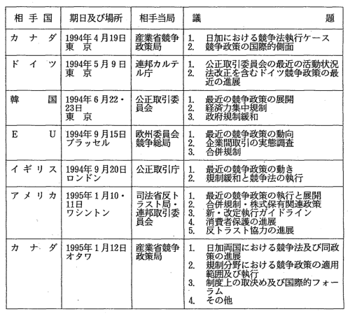| 当委員会は,OECDやUNCTAD以外に,WTO,APEC,国連 多国籍企業委員会等で行われている討議に対しても,競争政策の観点から 積極的に対応することとしている。 |