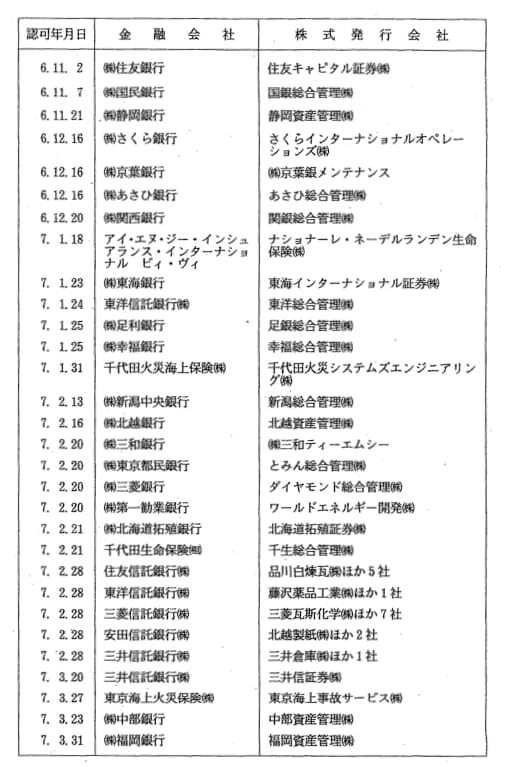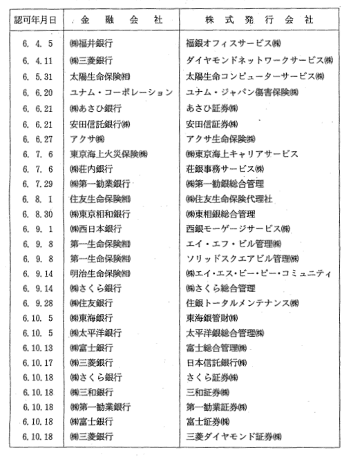 | 4-1 | 金融会社の株式保有の制限に係る認可一覧 | ||||||||