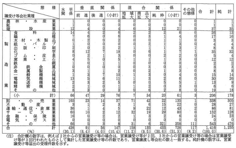 | 4-4表 | 態様別・営業譲受け等会社業種別営業譲受け等件数(平成6年度) | ||||||||