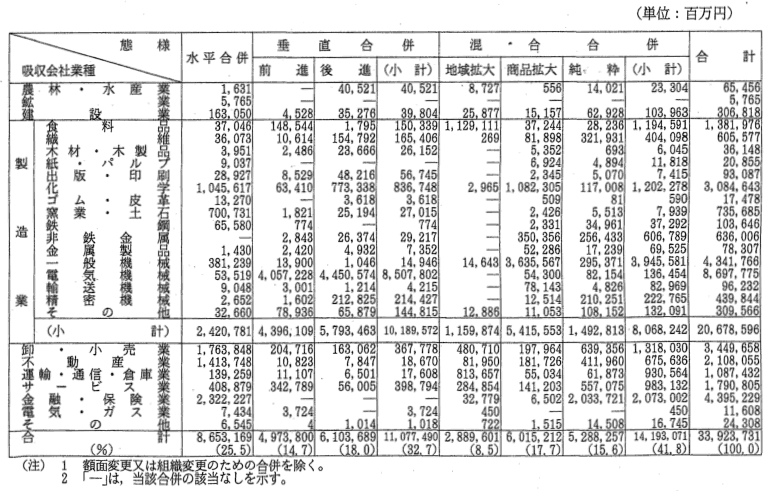 | 4-5表 | 合併態様別吸収総資産額(平成6年度) | ||||||||