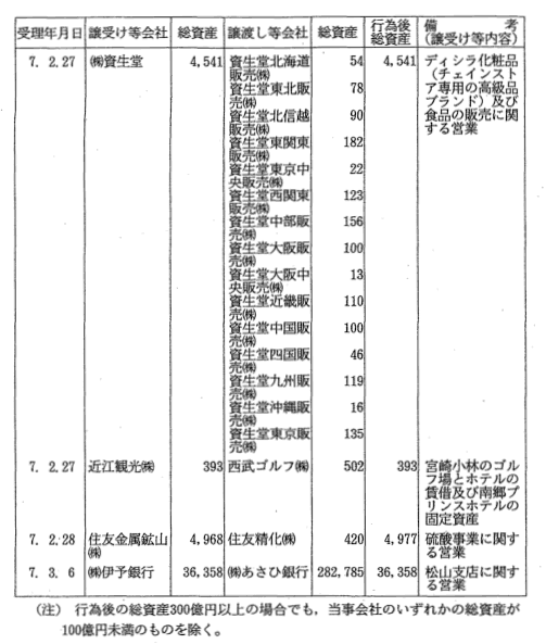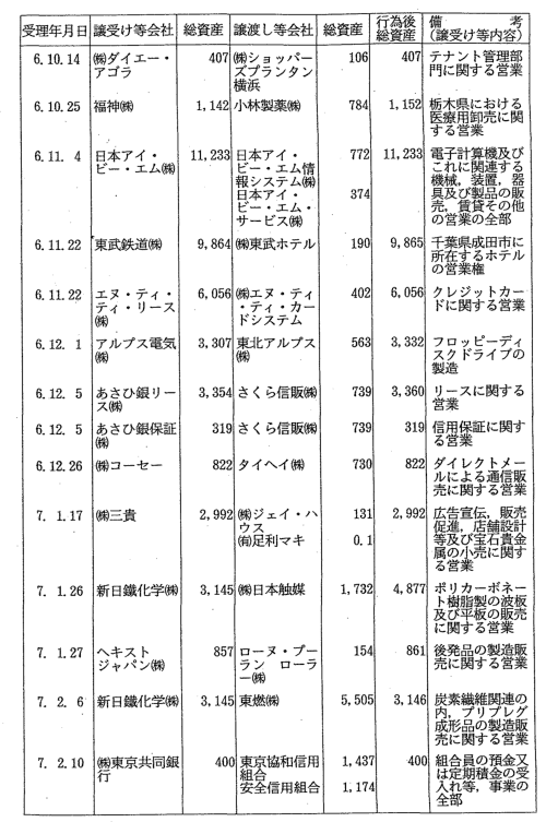 | 4-12表 | 行為後の譲受け等会社の総資産が300億円以上となる 営業譲受け等 |