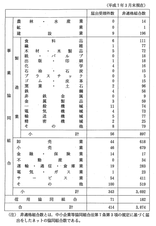 業種別事業協同組合及び信用協同組合の届出受理件数並びに非