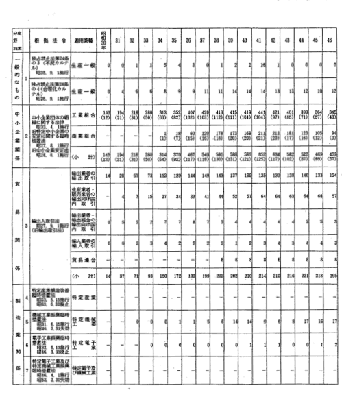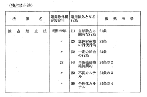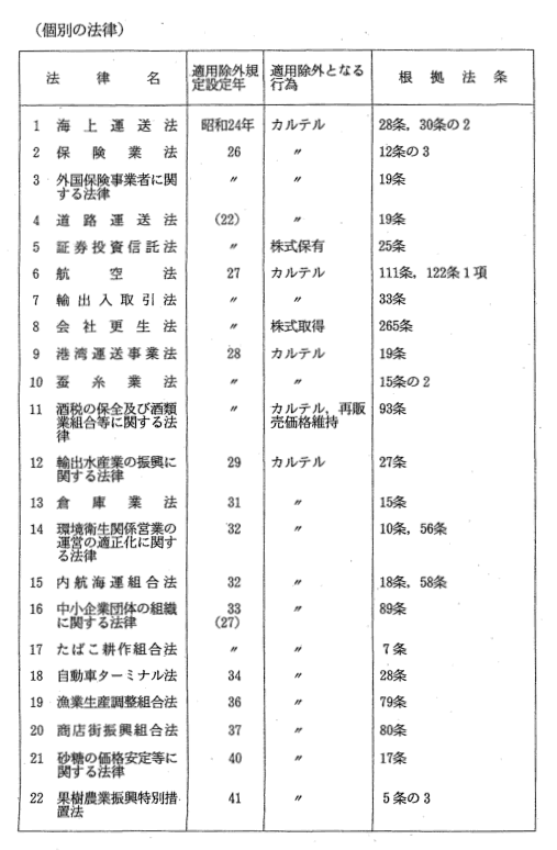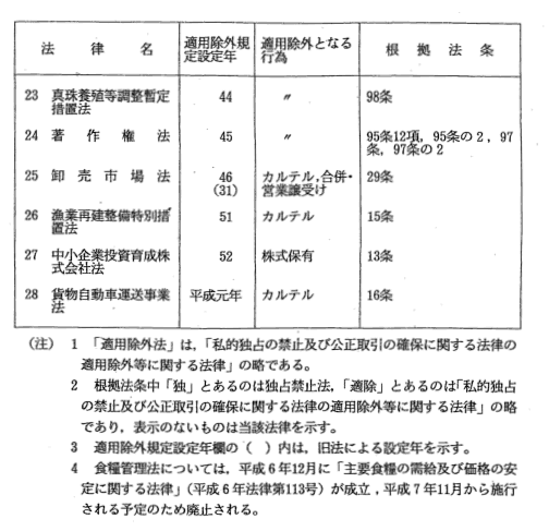 | 7-1表 | 独占禁止法適用除外制度根拠法令一覧 | ||||||||||||||||||||||||||||||||||||||||||||||||||
