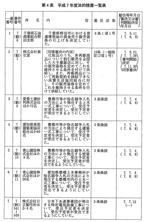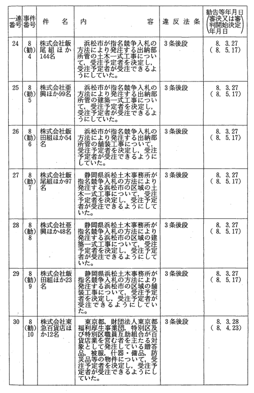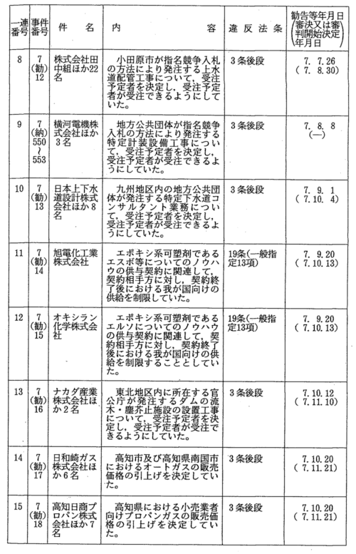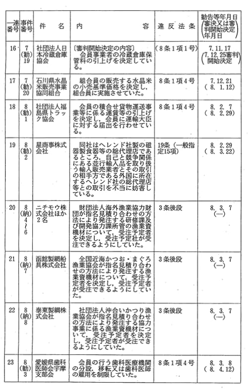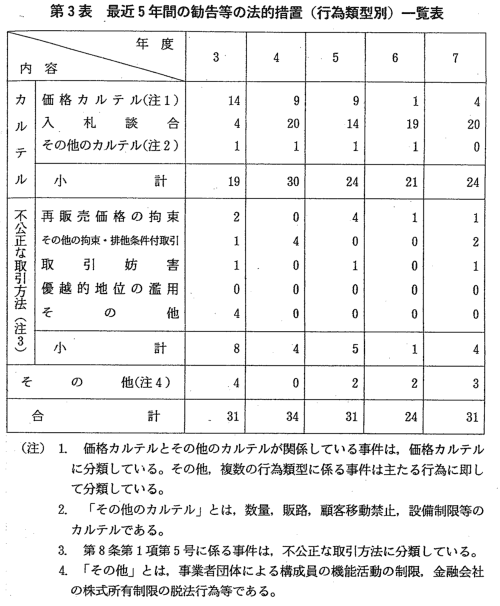 は,価格カルテル4件,入札談合20件,不公正な取引方法4件,その他3件