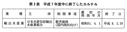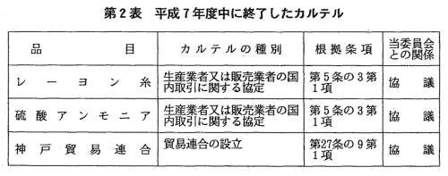 はなく,平成7年度中に終了したカルテルは3件であり,平成7年度末現