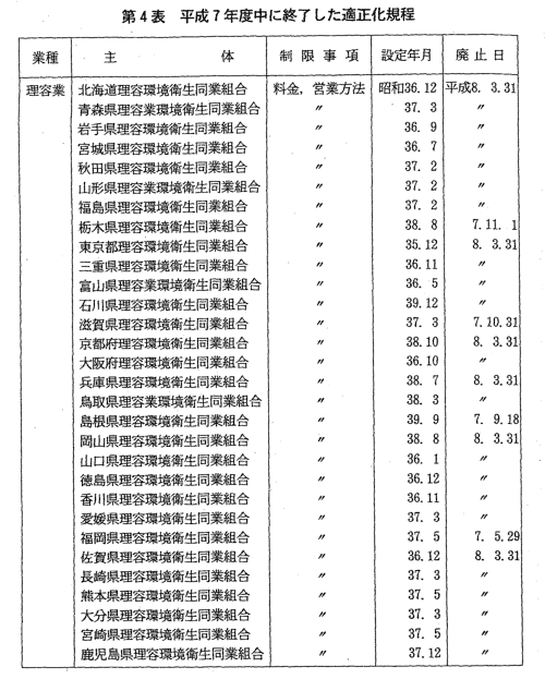 同法に基づく適正化規程は理容業の1業種のみであり,平成7年度にお