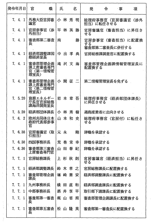 | 1-3表 人事異動(平成7年度,管理職以上) |