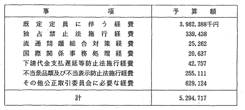 | 1-4表 公正取引委員会の予算額(平成7年度,補正後) |