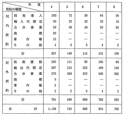 いては,サービス,化学製品が上位を占め,また技術導入契約においては,
