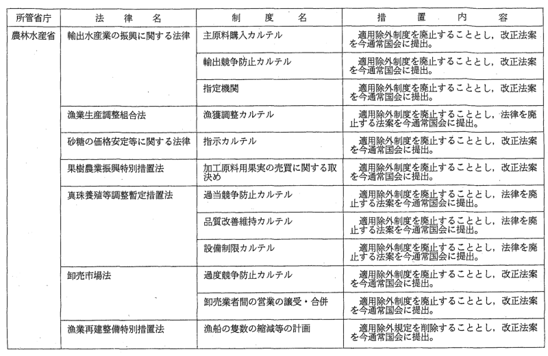 末までに具体的結論を得る。この際,適用除外法については,法そのもの